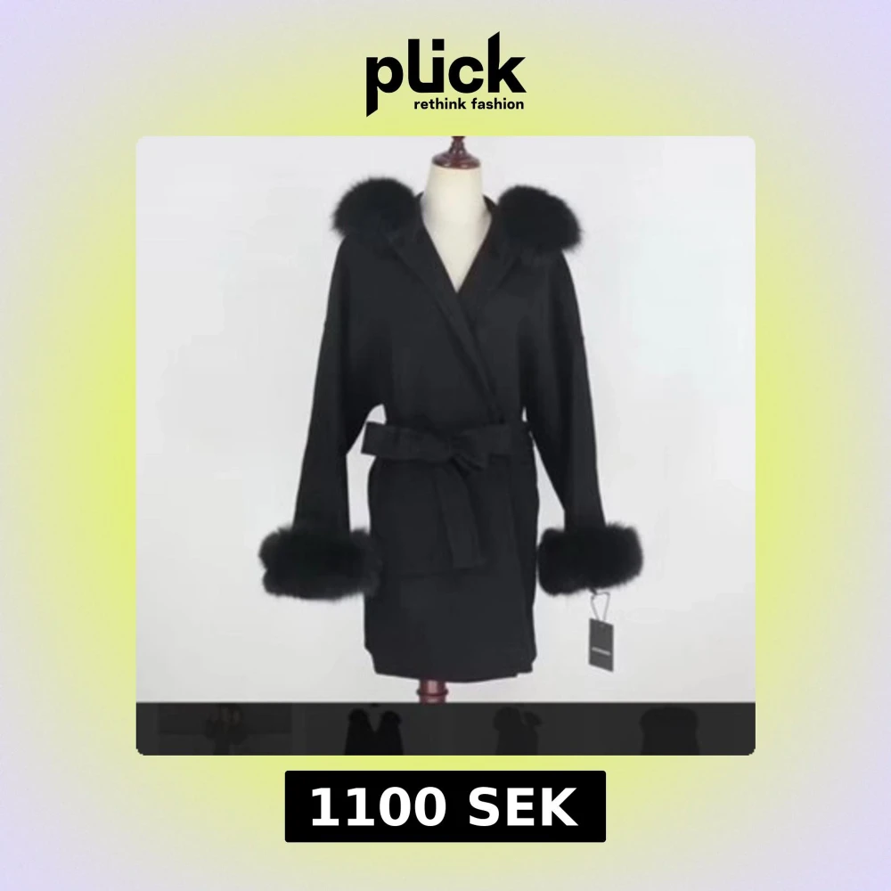 Snygg svart kappa med bred krage och ärmslut i fuskpäls. Kappan har ett matchande bälte i midjan för en markerad siluett. Perfekt för dig som vill ha en elegant och trendig look. För bättre bilder och info kan skickas privat ( pris kan diskuteras )
