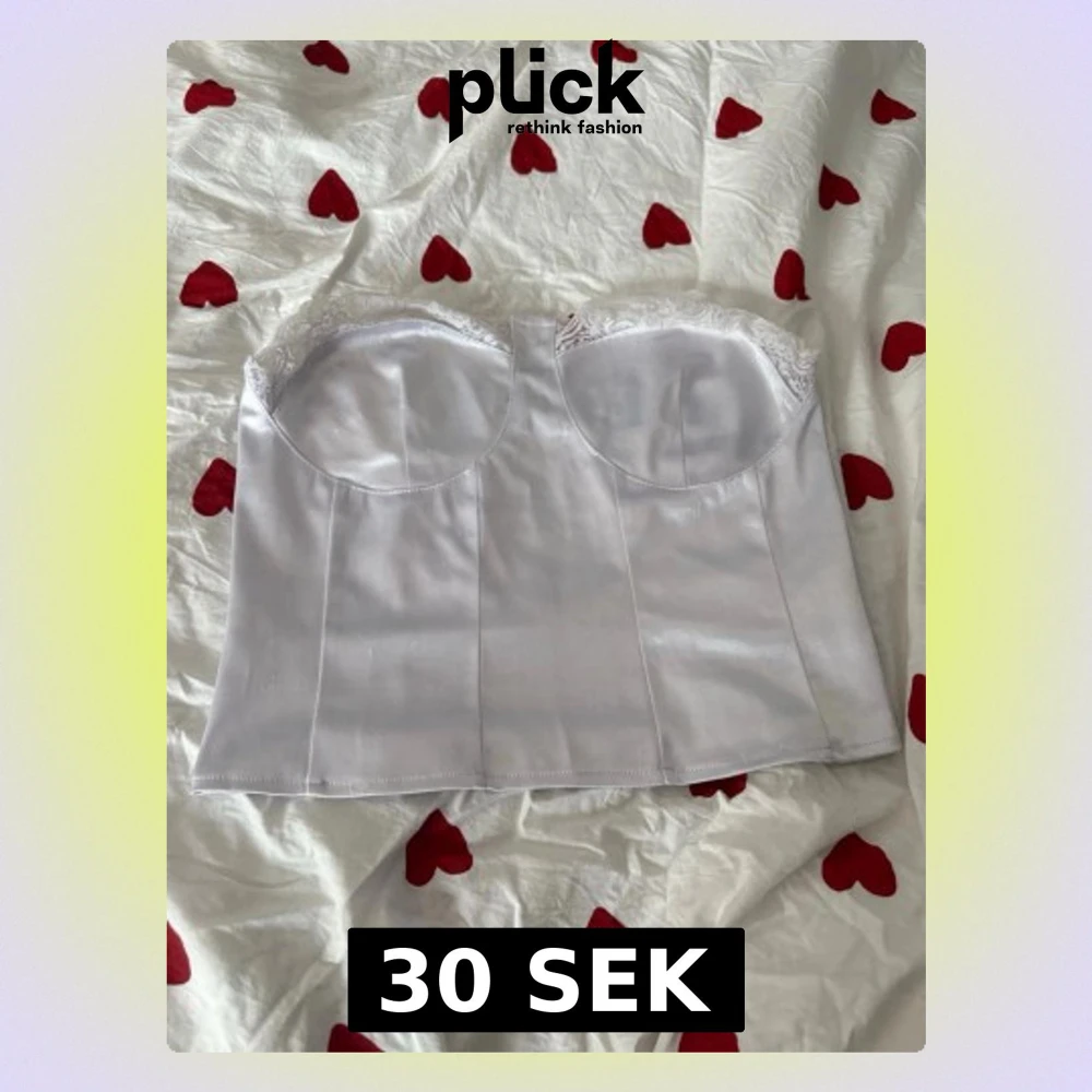Snygg vit axelbandslös korsett med bygel och spetsdetaljer upptill. Toppen har en silkeslen finish och dragkedja bak för enkel påklädning. Perfekt för att styla med höga jeans eller kjol för en trendig look. Defekter finns! Den är nopprig som syns på de två sista bilderna men det är inget man tänker på när den är på! Även så har någon enstaka söm gått av men det är inte heller något som syns på!💓🌸