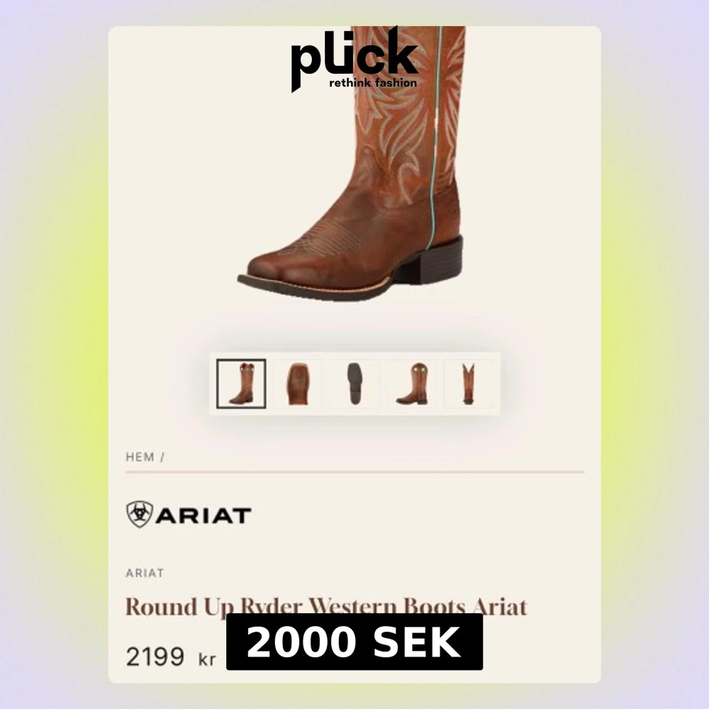 Snygga cowboy boots från Ariat i brunt läder med dekorativa broderier i beige och orange på skaftet. Klassisk spetsig tå och låg klack, perfekt westernstil. Boots med robust sula och detaljerad sömnad längs kanterna. Kommer i originalkartong. Knappt användna, fint skick. Köpte för 3k säljer för 2k.