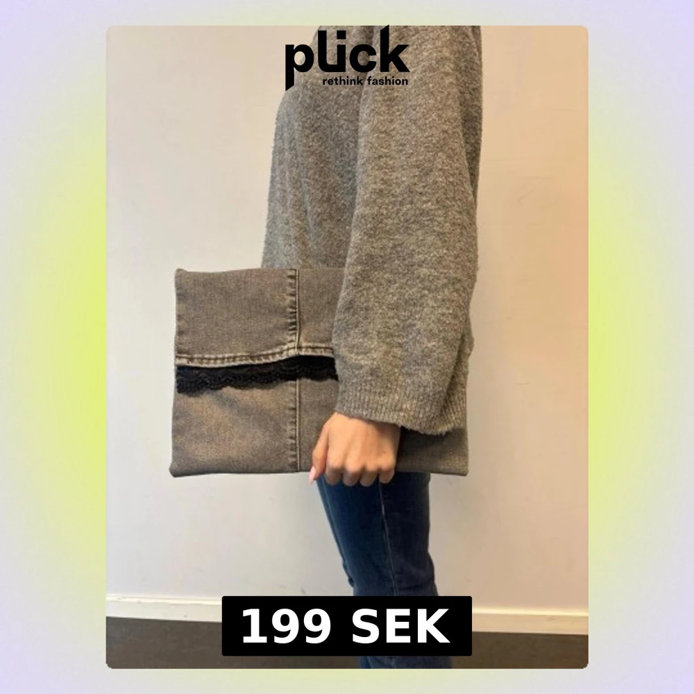 GrĂ„tt datorfodral av Ă„tervunna jeans med filt och silke inuti, svart spets och magnetisk knapp!đ Fodralet Ă€r ca 37x27 cmđ