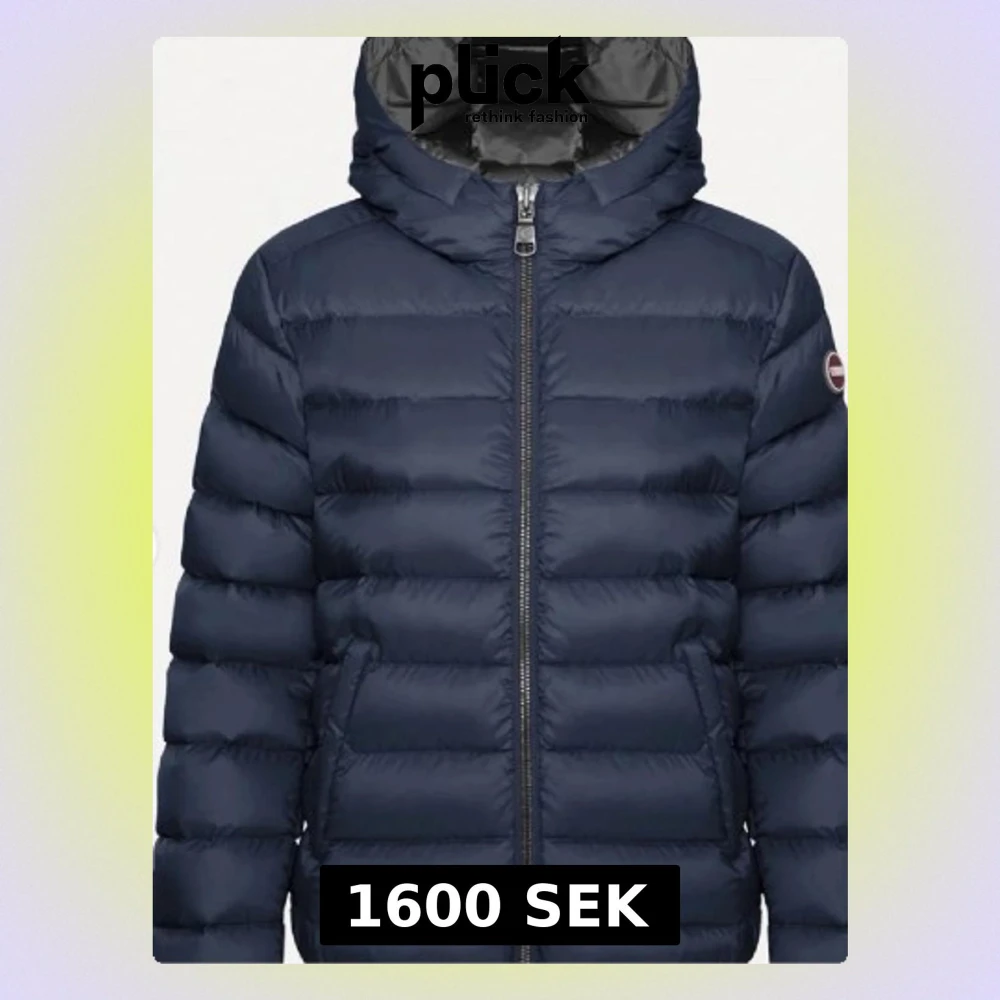 Snygg mörkblå dunjacka med huva och dragkedja framtill. Mycket bra skick, storlek XS-S.