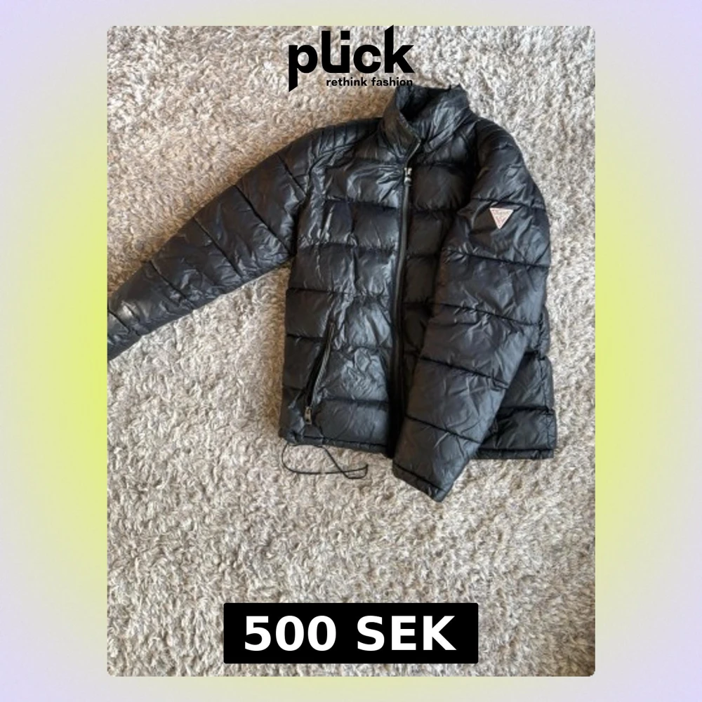 Snygg svart dunjacka från Guess med hög krage och dragkedja framtill. Jackan har två fickor med dragkedja och den klassiska Guess-loggan på vänster ärm. Perfekt för kalla vinterdagar och har en stilren, quiltad design.