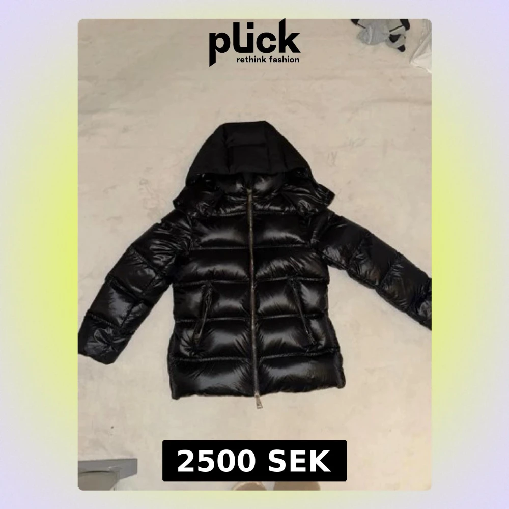 Snygg svart dunjacka från Massimo Dutti med glansig finish, stor huva och två dragkedjeförsedda fickor framtill. Jackan har breda kanaler och en rak passform, perfekt för kalla dagar. Stängs med dragkedja hela vägen upp. Stolek S (knappt använd)