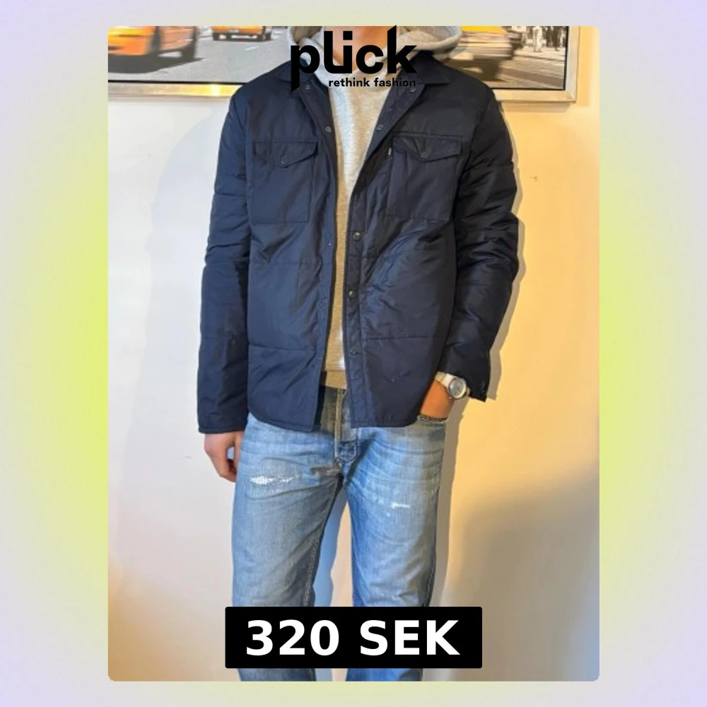 Mörkblå dunjacka med tryckknappar