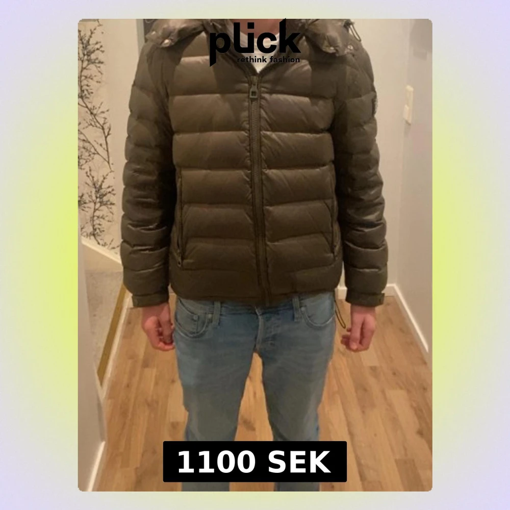 Säljer en mörkgrön dunjacka med huva och dragkedja framtill. Jackan har en puffig design med horisontella sömmar och två sidofickor. Perfekt för kalla vinterdagar och riktigt skön att bära. Passar dig som vill ha en stilren och varm jacka. Pris kan diskuteras!