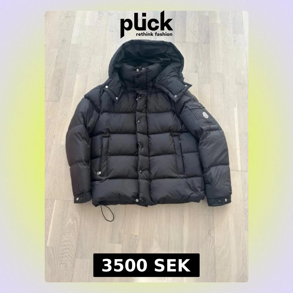 Snygg svart dunjacka från Moncler med avtagbar huva, stora fickor och klassisk logotyp på ärmen. Jackan har quiltad design och stängs med både dragkedja och knappar. Perfekt för kalla vinterdagar och riktigt varm tack vare dunfyllningen. MONCLER VEZERE.