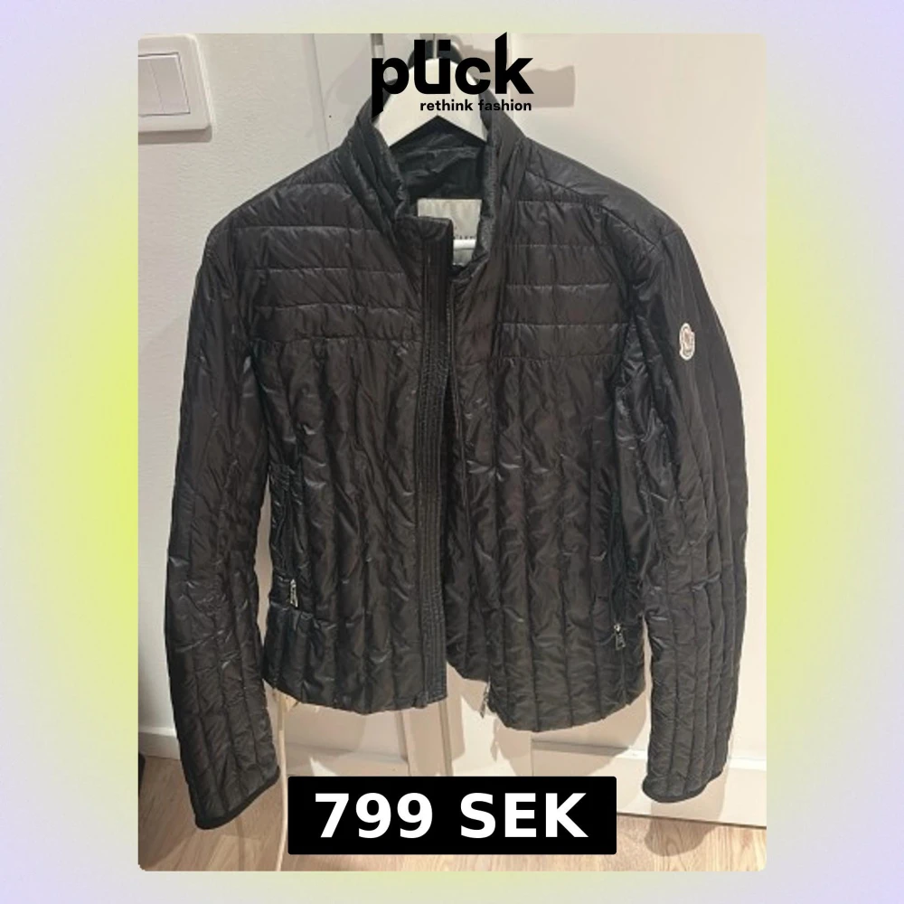 Säljer en svart dunjacka från Moncler bra skick lite äldre modell och ett litet hål som är täckt med en svart tejpbit men går att sy igen därav priset strlk 1/s