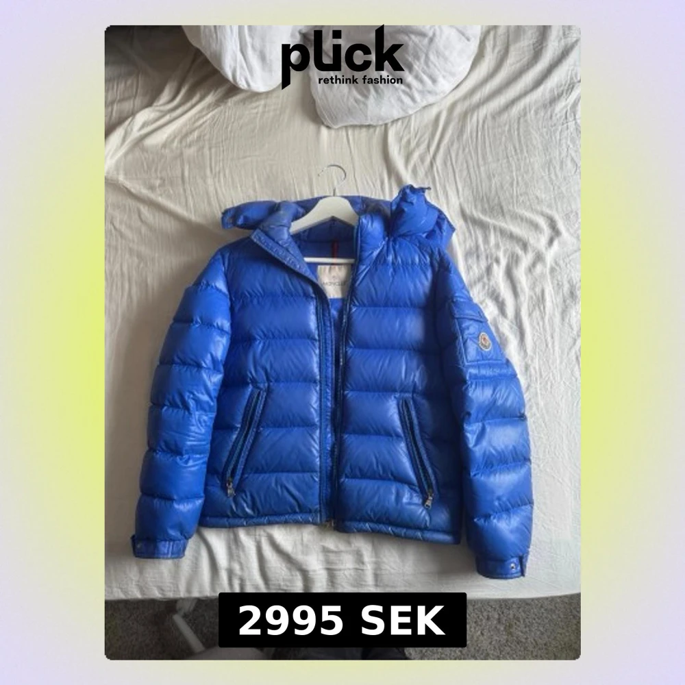 En Moncler Maya Jacka i en snygg blå färg. Den är i xs och fint skick