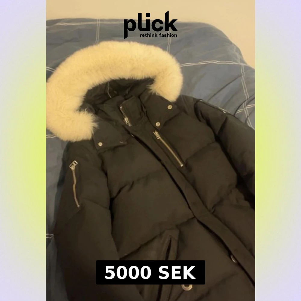 Säljer en svart dunjacka från Moose Knuckles med stor vit pälskant på huvan. Jackan har flera dragkedjeförsedda fickor, metallknappar och Moose Knuckles-logga på ärmen. Perfekt för kalla vinterdagar och riktigt snygg.öppen för byten!
