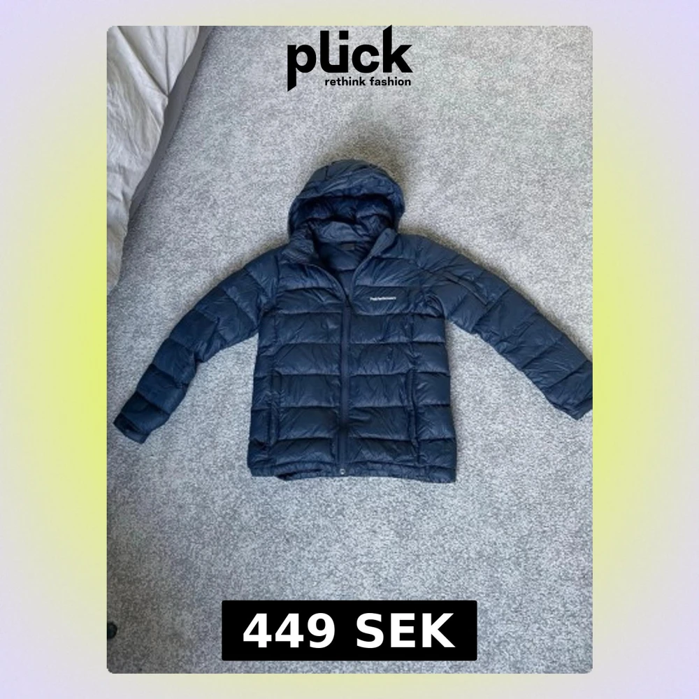 Mörkblå dunjacka från Peak Performance. Nypris: 2100kr. Storlek 170