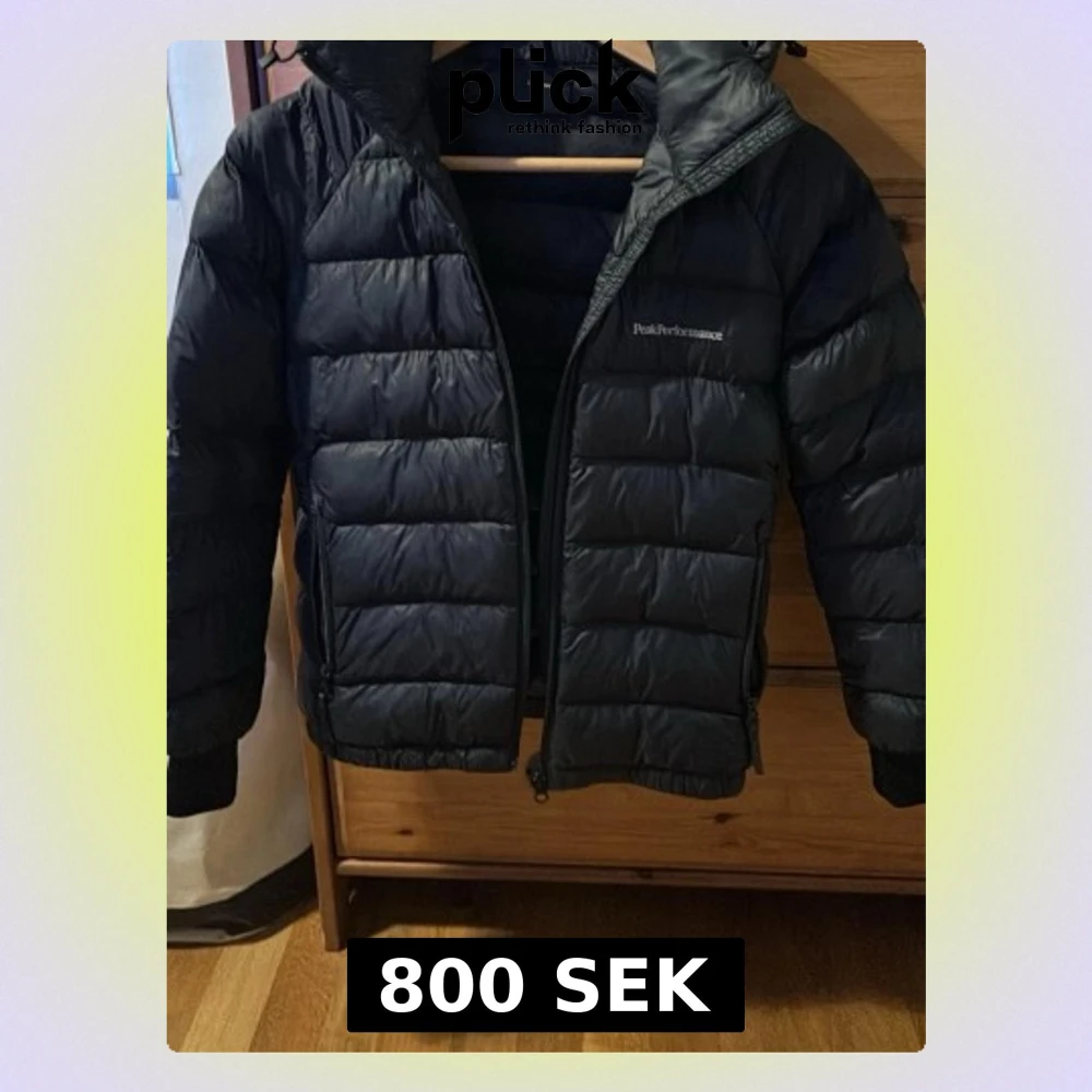 Snygg svart pufferjacka från Peak Performance med huva och dragkedja framtill. Jackan har quiltad design och är perfekt för kyliga dagar. Klassisk passform och diskret logga på bröstet ger en stilren look. Inga hål