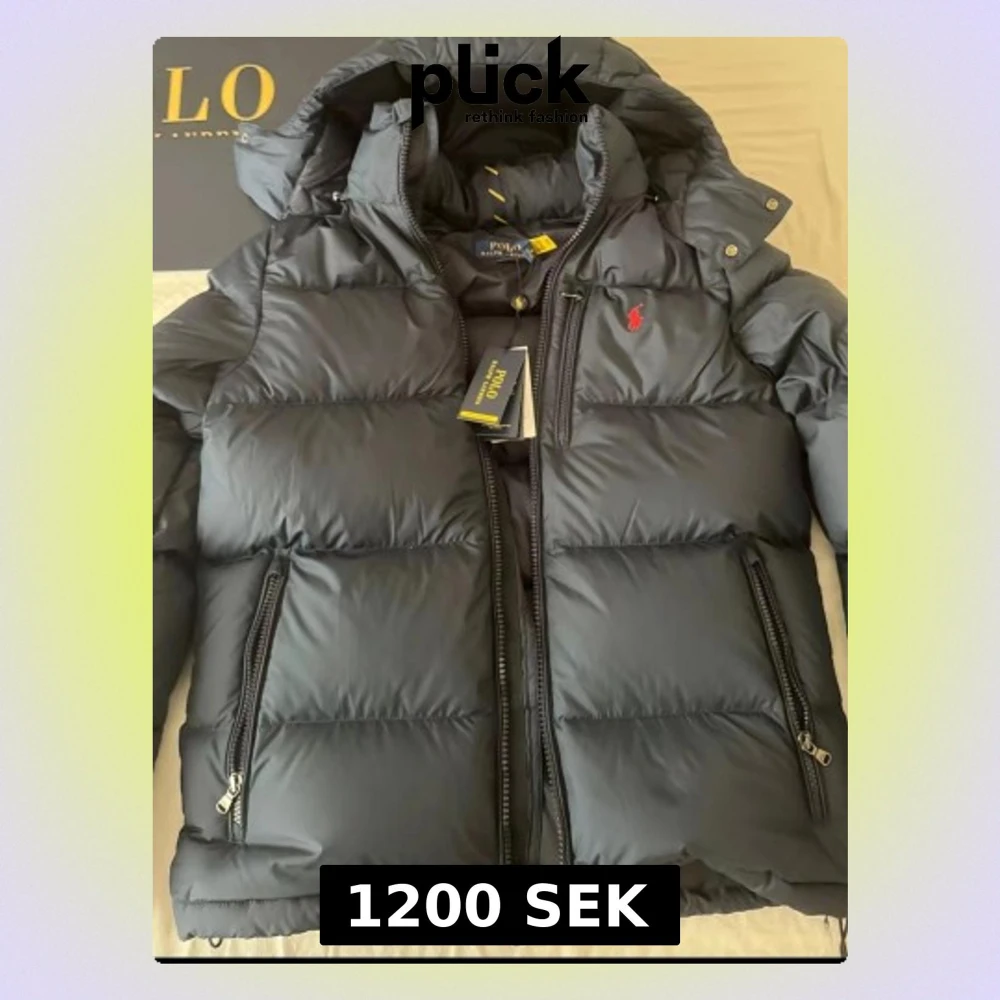 Snygg svart dunjacka från Polo Ralph Lauren med klassisk röd logga på bröstet. Jackan har huva, två dragkedjeförsedda fickor och tjock vaddering som håller dig varm under kalla dagar. Perfekt för vinter och streetwear-stil.
