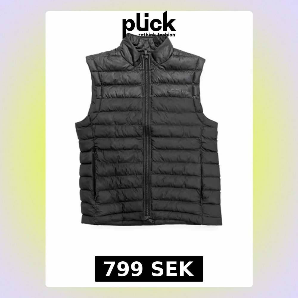 Snygg svart dunväst från J.linderberg med quiltad design och hög krage. Västen har dragkedja framtill och två sidofickor med dragkedja. Perfekt att slänga över en hoodie eller tröja för extra värme. Tillverkad i lätt och smidigt material med dunfyllning. Använd ett få tal gånger. Stolek s