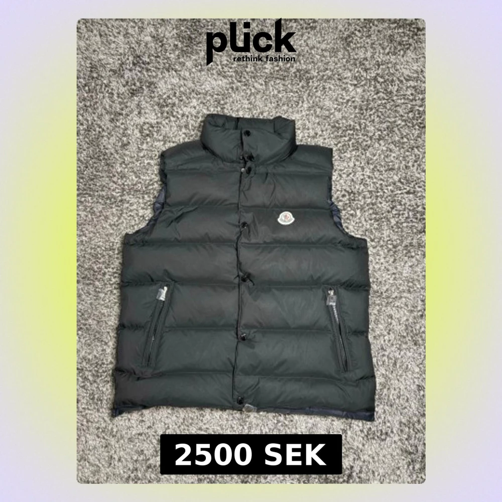 Snygg svart dunväst från Moncler med hög krage och två dragkedjefickor framtill. Västen har klassisk Moncler-logga på bröstet och stängs med både dragkedja och knappar. Perfekt för lager-på-lager och riktigt varm tack vare dunfyllningen.