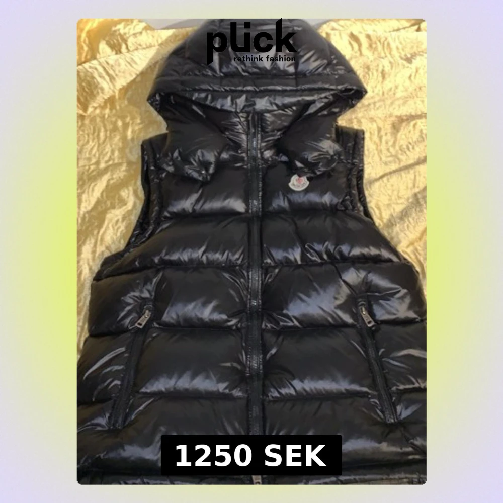 Snygg svart dunväst från Moncler med glansig finish och avtagbar huva. Västen har två dragkedjefickor framtill och klassisk Moncler-logga på bröstet. Perfekt för lager-på-lager och streetstyle. Insidan har ett unikt serietryck. Helt ny oanvänd .(NFC tag)