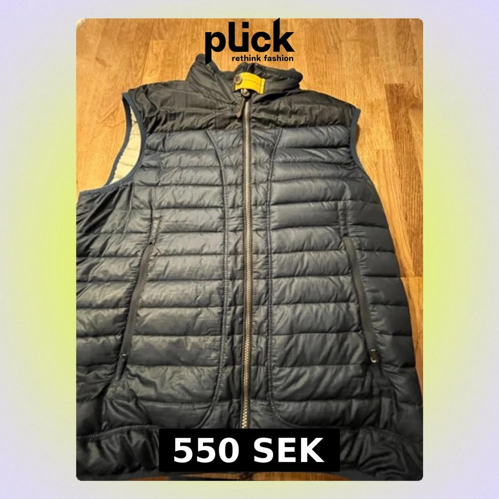 Snygg mörkblå dunväst från Parajumper med gul detalj vid kragen och två dragkedjeförsedda fickor. Västen har quiltad design och hög krage för extra värme. Perfekt för lager-på-lager och outdoor-vibe. Där är ett litet hål på ryggen och ett litet hål vi den ena fickan! Stl XL men passar stl M och L