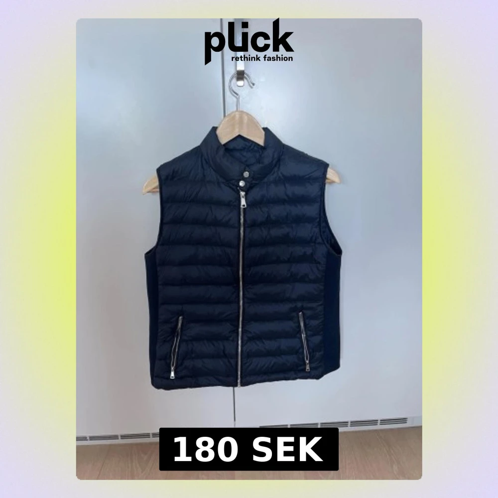 Snygg svart dunväst med ståkrage och två dragkedjefickor framtill. Västen har quiltad design och stängs med både dragkedja och tryckknapp vid halsen. Perfekt för lager-på-lager och enkel att matcha med olika outfits. Storlek Xl på papper men sitter som S