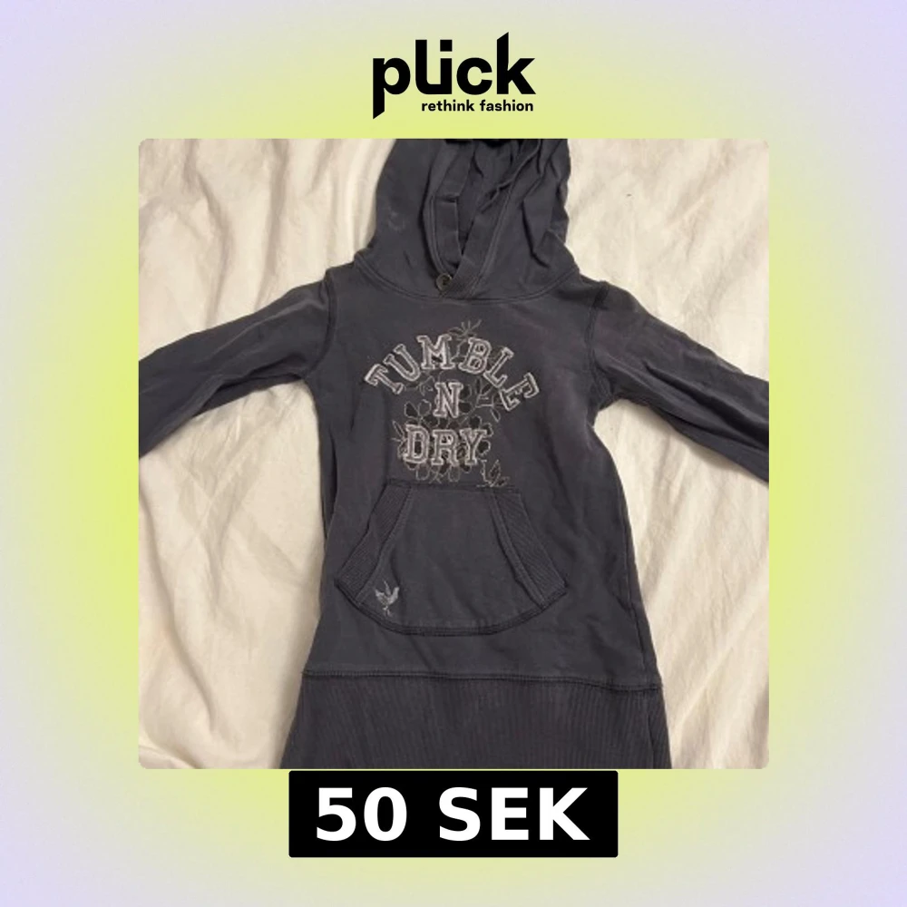 Snygg mörkblå/mörkgrå hoodieklänning från Tumble 'N Dry med tryck framtill. Tröjan har en praktisk känguruficka och en bekväm huva. Perfekt för en avslappnad stil. Den kommer tvättas och strykas innan den skickas! ⭐️