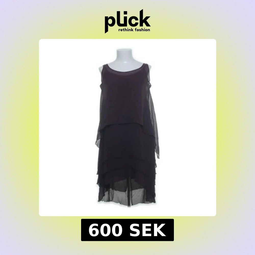 Unik mörklila långklänning i 100% silke från Karl Lagerfeld for H&M. Klänningen har lager-på-lager-effekt, tunna axelband och snygga knappar i ryggen. Den är luftig och har en lätt transparent känsla med vackert fall. Obs! 34 (XS)