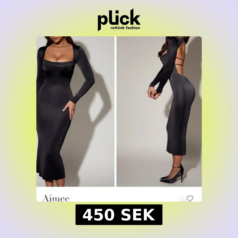 Elegant svart långklänning i figurnära modell med långa ärmar och öppen rygg. Klänningen har en stilren siluett och tunna band i ryggen som ger en modern touch. Perfekt för dig som vill sticka ut med en sofistikerad look.