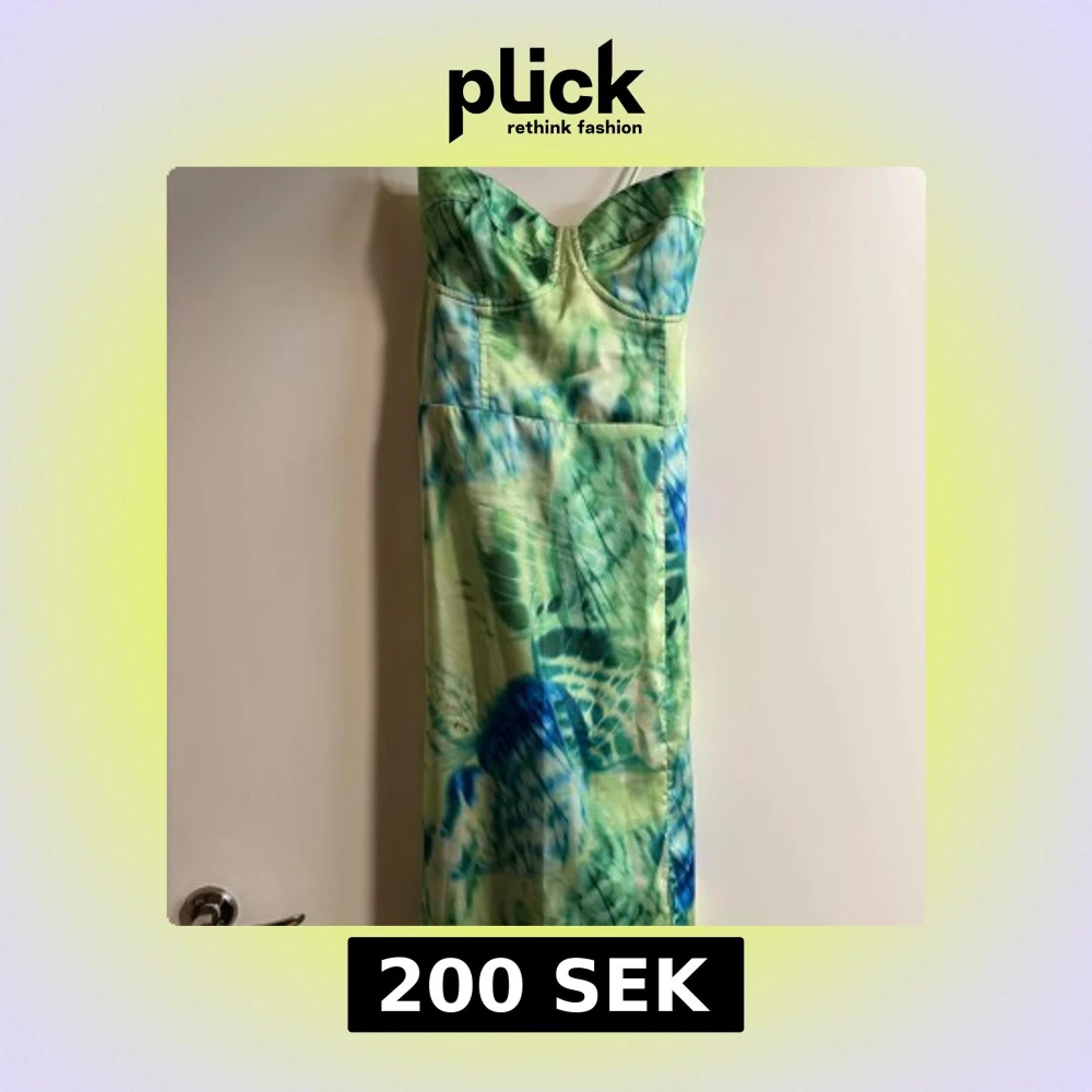 Snygg långklänning med grönt och blått mönster. Klänningen har smala axelband och en smickrande passform. Perfekt för somriga dagar!