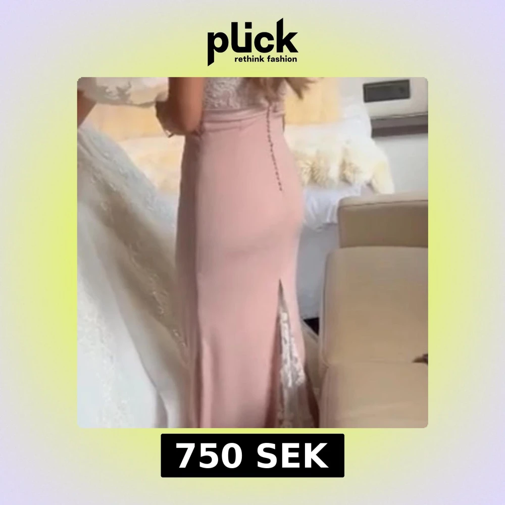 Ljusrosa långklänning med smala axelband - Säljer en ljusrosa långklänning med smala axelband och figurnära passform. Klänningen är ärmlös och har en enkel, stilren design med rundad halsringning och öppen rygg. Det är en liten fläck, jag har spillt något o de har blekts. Men de syns knappast