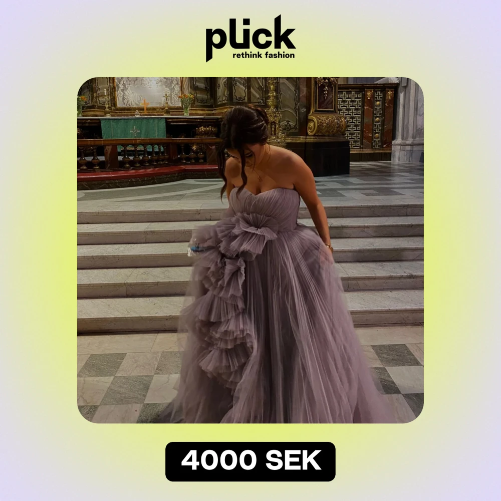 Säljer en fantastisk ljuslila balklänning i tyll med volanger. Den är axelbandslös och har en vacker rosett framtill. Perfekt för bal eller fest! 💜