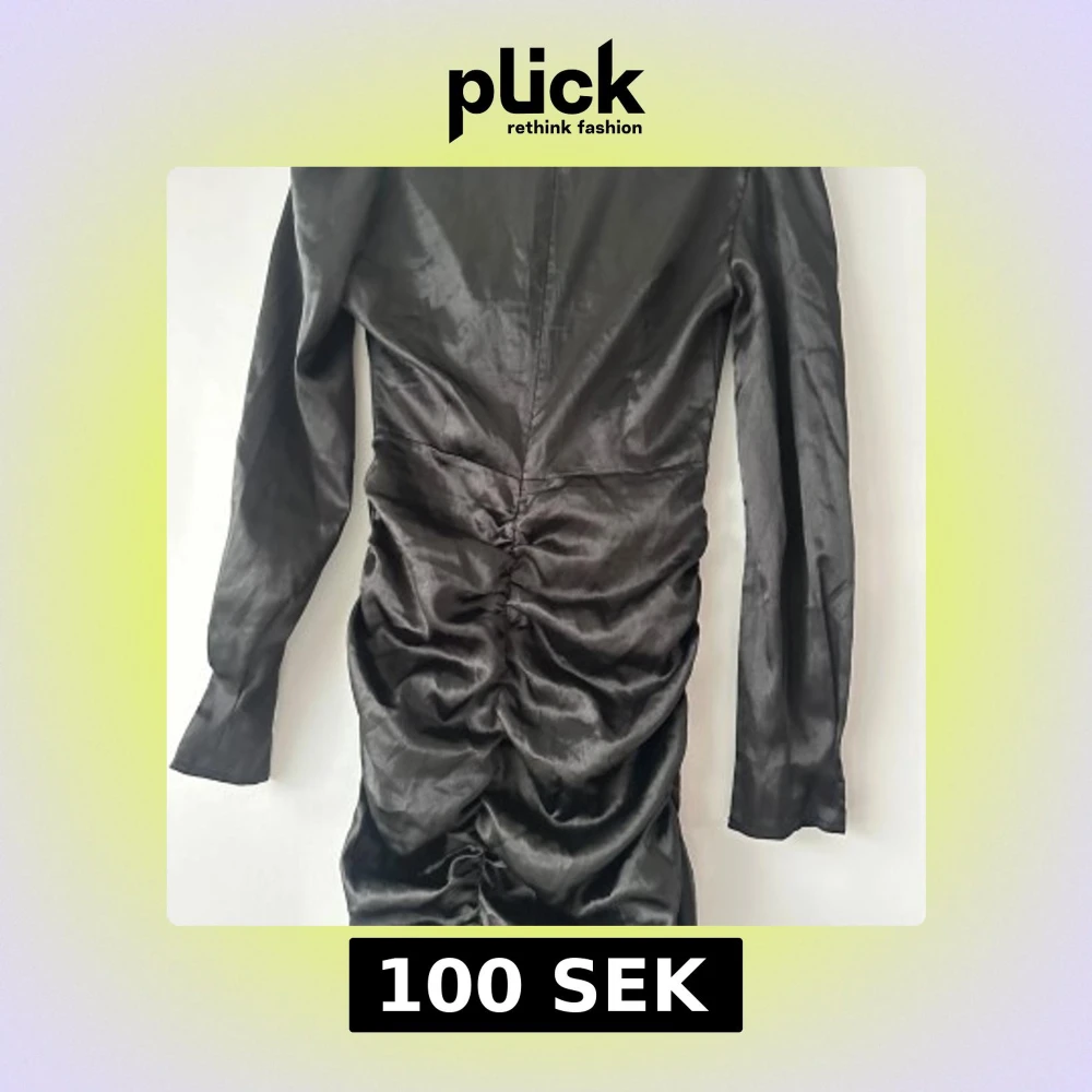 Säljer en svart långärmad klänning i satin med twistad detalj framtill och cut-out vid midjan. Klänningen har rynkade partier längs kjolen och en figurnära passform. Perfekt för dig som vill sticka ut med en trendig look.