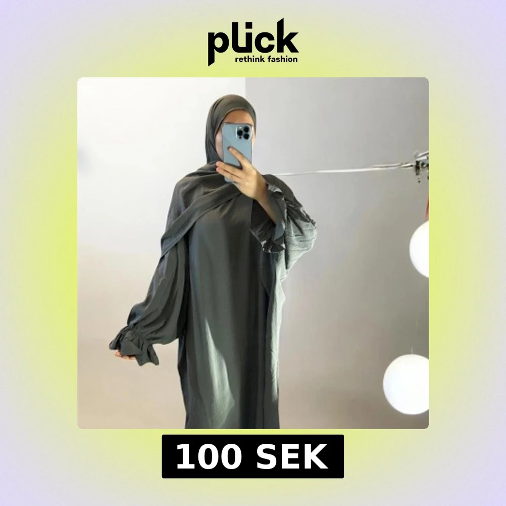 Säljer en oversized långklänning med voluminösa volangärmar och rund hals. Klänningen finns i flera färger som svart, brun, grå och ljuslila. Tillverkad i ett lätt, flowy tyg som ger en chill och modest vibe. Perfekt för dig som gillar loose fit och stilrena detaljer.