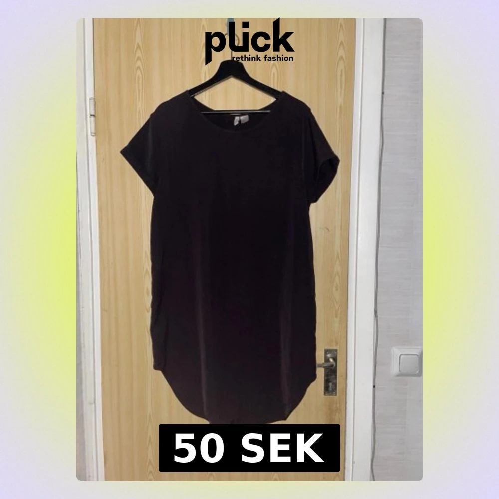 Enkel svart t-shirtklänning från H&M Divided med rund halsringning och korta ärmar. Rak och avslappnad passform i mjukt bomullsmaterial. Perfekt basplagg att styla med sneakers eller boots.