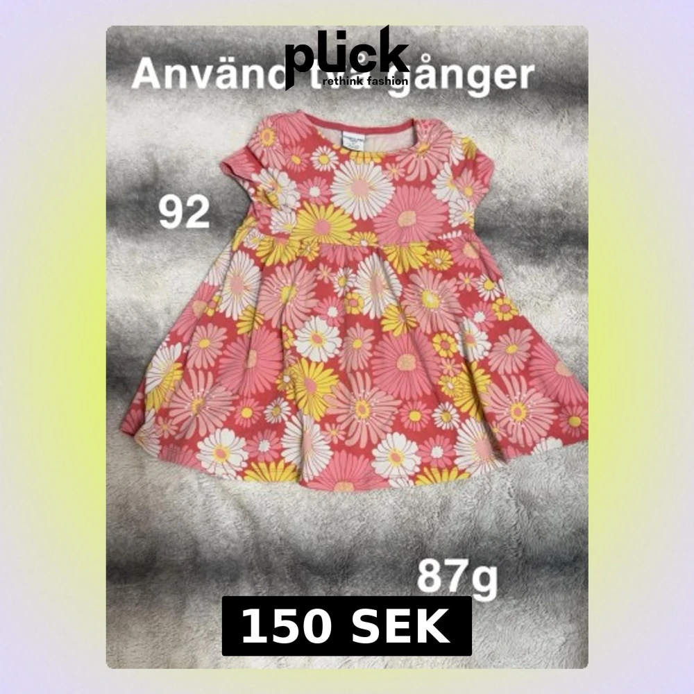 Supersöt kortklänning med stora blommor i rosa, gul och vit på en rosa botten. Klänningen har korta ärmar och rund hals. Perfekt för sommarens alla äventyr som känns skön mot huden.🌸 Använd två gånger. Storlek 92