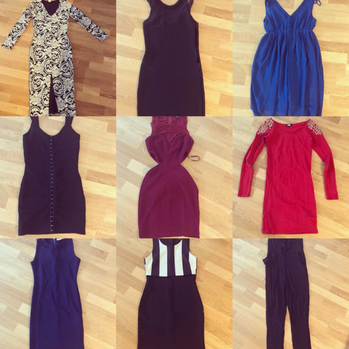 Säljer 12 stycken snygga klänningar i storlek 34/S. Säljs för 100kr styck eller i paketpris 300kr.