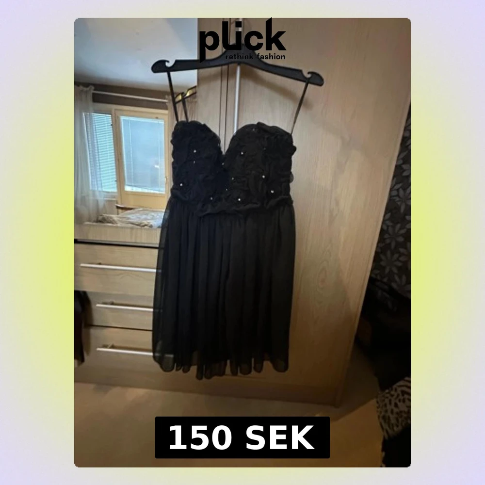 Svart kort klänning med pärlor