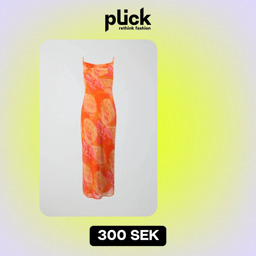 Blommig klänning - Säljer min orangea klänning med blommor i glansigt material. Den framhäver verkligen ens bränna på sommaren