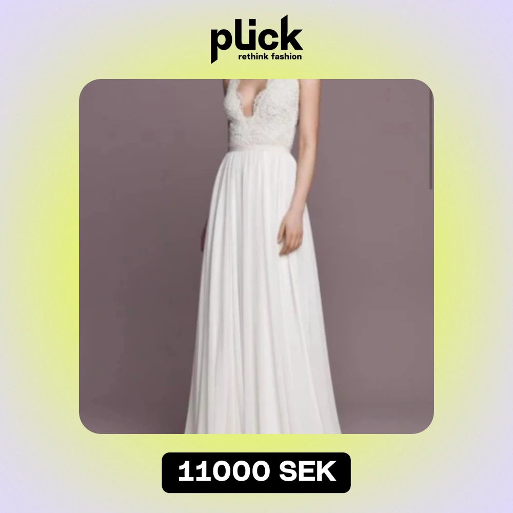 Daalarna whisper snt 563 min drömklänning. Klänningen köptes ny i salongen Daalarna, stl 36/38, endast använd till ceremonin och kreativ fotografering. Jag är 175 cm lång och bar 8 cm skor. Färg: den övre delen är elfenben och kjolen är benvit.