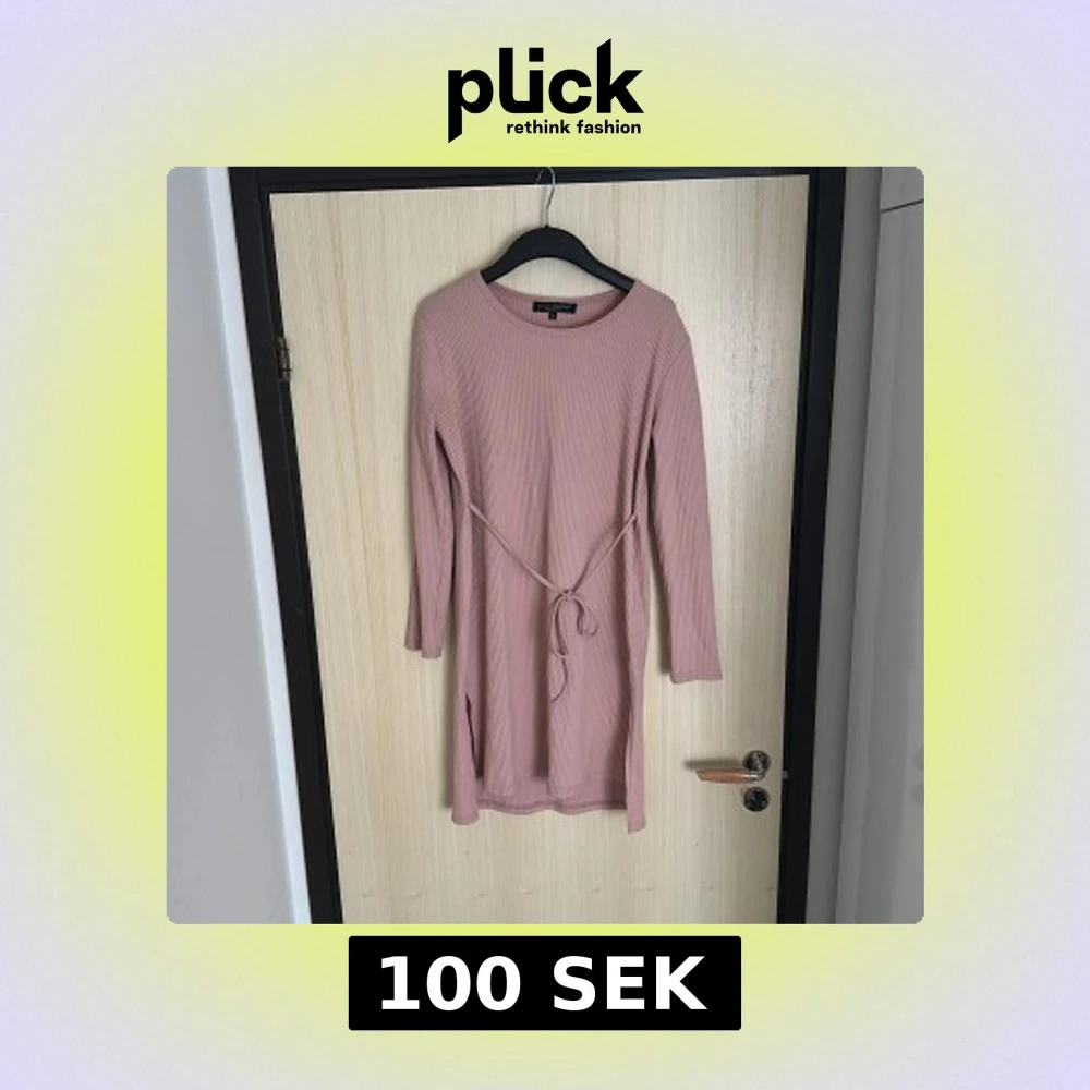 Supersöt ljusrosa ribbad klänning från Divinity Collection med lång ärm och knytband i midjan. Klänningen har en rund halsringning och är i mjukt stretchigt material, perfekt för en enkel och stilren look.