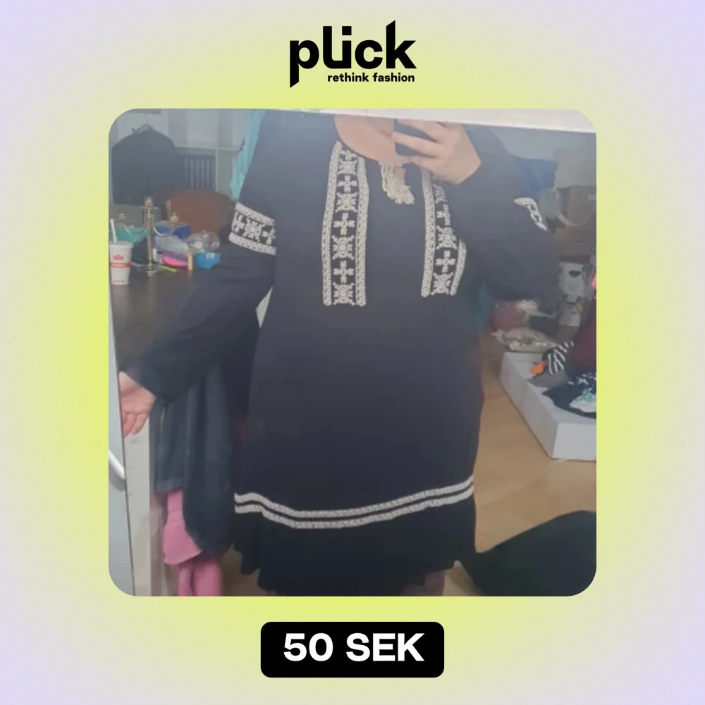 Svart tunika/klänning i tunt tyg med vita detaljer och snöring på framsida