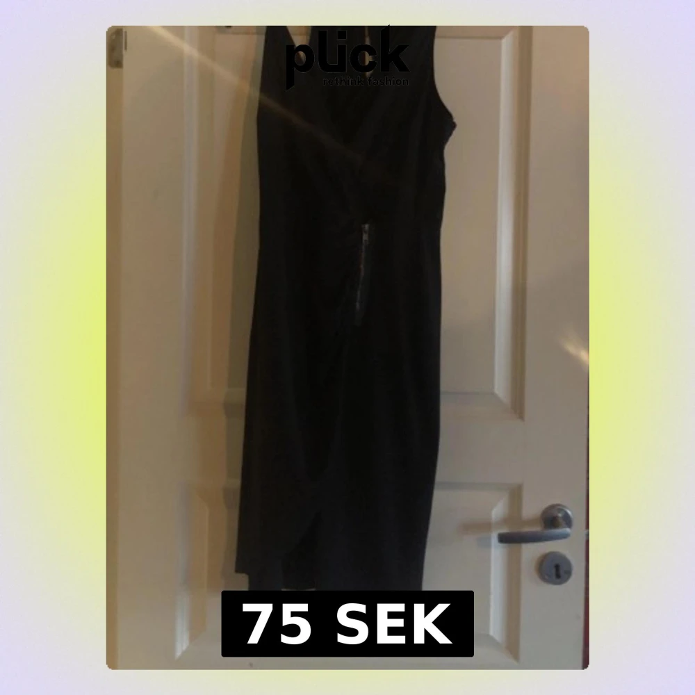 Snygg svart omlottklänning från TrulyMine i storlek 36/38. Klänningen har en omlottdesign med markerad midja och dragkedjedetalj framtill. Perfekt för dig som gillar stilrena och trendiga plagg.