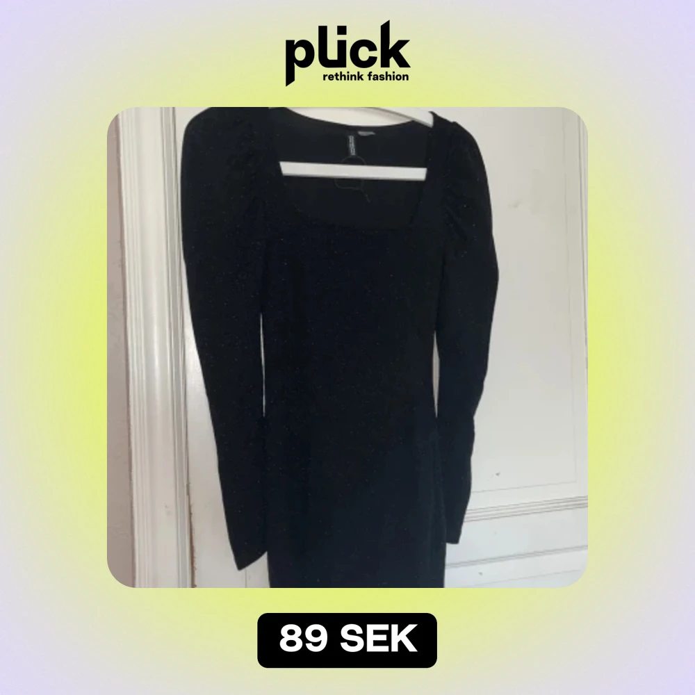 svart glittrig klänning med puffärmar ifrån h&m🩷 perfekt till exempelvis nyårsafton🩷 storlek XS och aldrig använd. pris kan diskuteras🩷