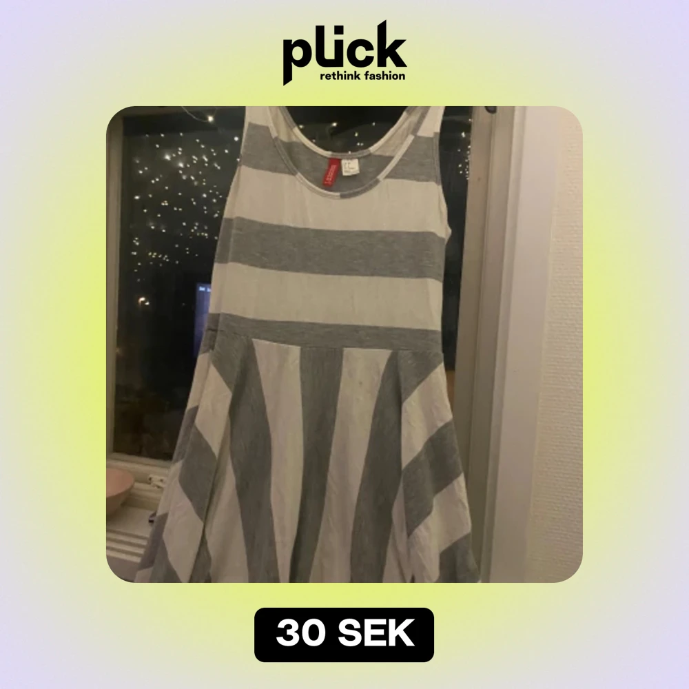 Säljer en superfin randig klänning från H&M Divided. Den är vit och grå med breda horisontella ränder och ärmlös design. Perfekt för sommardagar eller en avslappnad fest. Klänningen är i storlek 38 och är tillverkad i Turkiet.