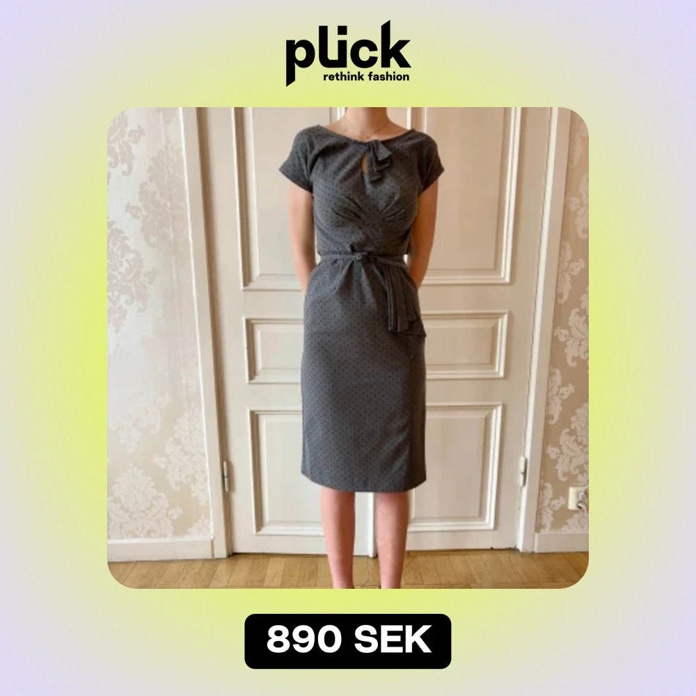 Fin grå prickig klänning i skönt material. Storlek M. Kommer med justerbart bälte. Modellen på bilden är 173 cm och har storlek 38 i de flesta andra kläder. Aldrig använd. Vi har lagt ner vår klänningsbutik och säljer ut. Ny pris är 2000-3000kr