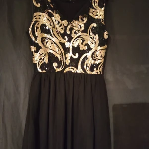 Än klänning i guldpaljeter på använt en gång hel och fin.