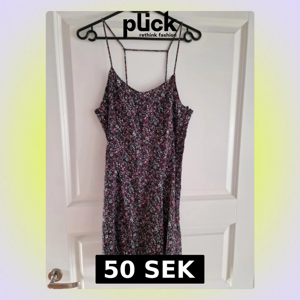 Ny blommig kort klänning med smala band med etikett