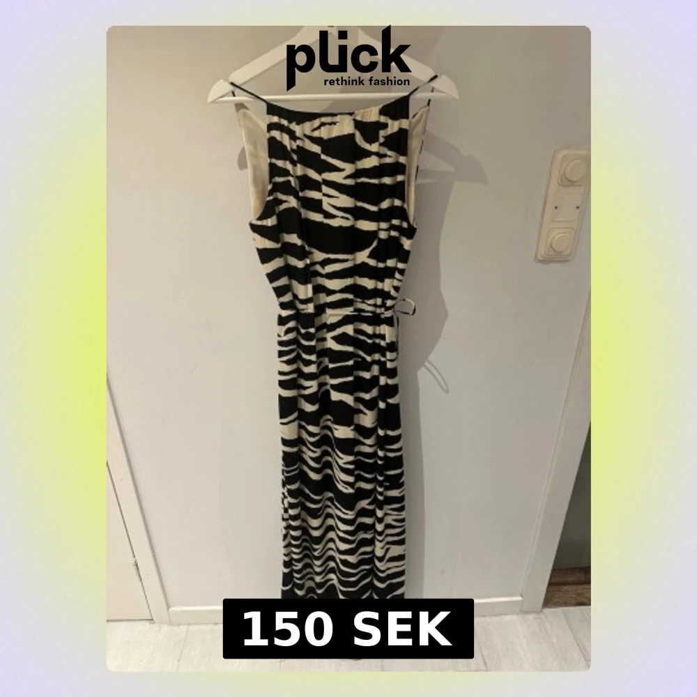Cool långklänning med svartvitt zebramönster och ärmlös design. Klänningen har en rak passform och är tillverkad i ett mjukt, följsamt material som känns skönt mot huden. Perfekt för dig som vill sticka ut med en trendig look. Smalt skärp i midjan.