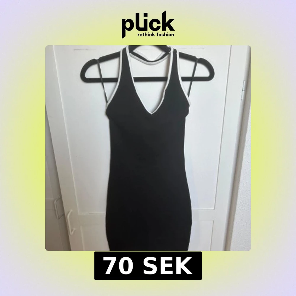 Klänning  - Snygg svart kortklänning med tunna axelband och vita kontrastsömmar som ger en cool och modern look. Tight passform som framhäver figuren, perfekt för dig som gillar minimalistisk stil.