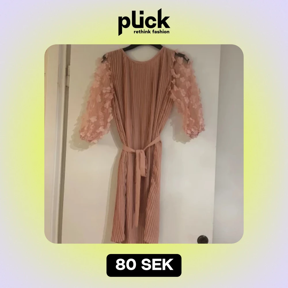 En söt klänning med ett band så di själv kan bestämma hur den ska sitta. Jätte gulliga blommiga ärmar. Passar perfekt till dop eller fest.
