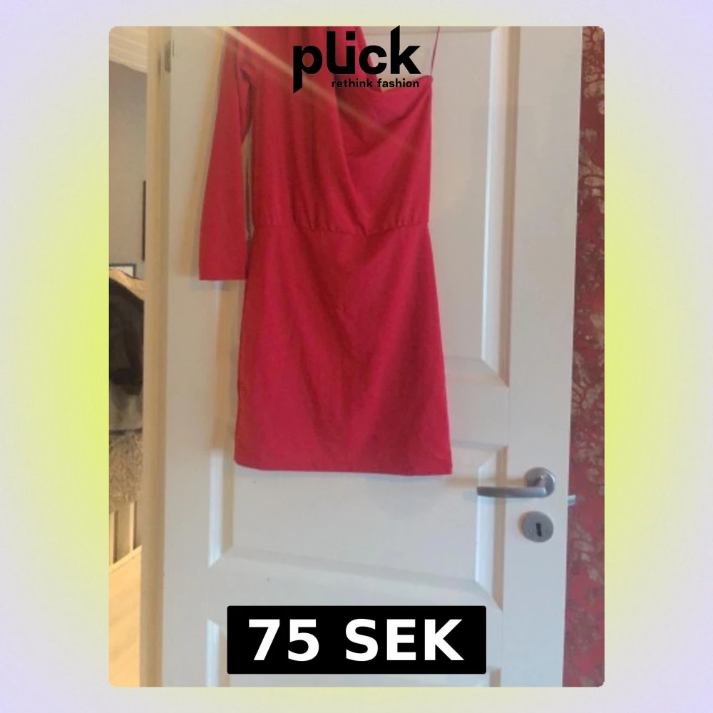 Snygg röd klänning från Bik Bok med asymmetrisk design, en lång ärm och en axelbandsdetalj. Klänningen har en kroppsnära passform och är gjord i ett mjukt, stretchigt tyg som ger en skön känsla. Perfekt för dig som vill sticka ut.