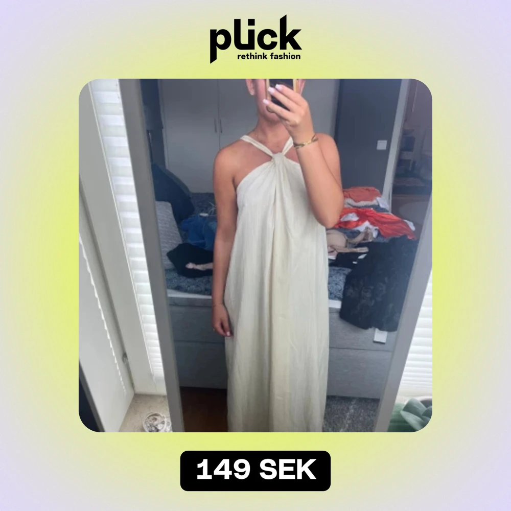 Studentklänning  - Köpte inför min student 2025 här på plick! Men bestämde mig för en annan klänning till slut så bilderna är inte mina, den är enbart testad🥰Oerhört eftertraktad klänning och köpt här på plick. Både runt ärmarna och längst ned vid kjolen är det resår. Hör gärna av dig vid frågor!.