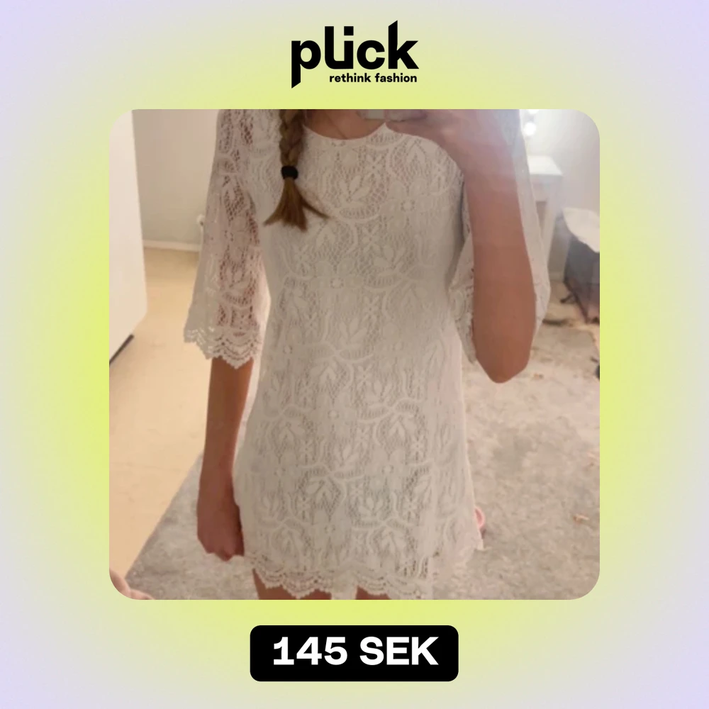 Jätte söt vit spets klänning från H&M. Säljer då den inte kommer till användning. Perfekt till student, konfirmation och skolavslutning. Den är strl 34 men passar mig bra som brukar ha strl S/ 36 och är 180cm🤍💗