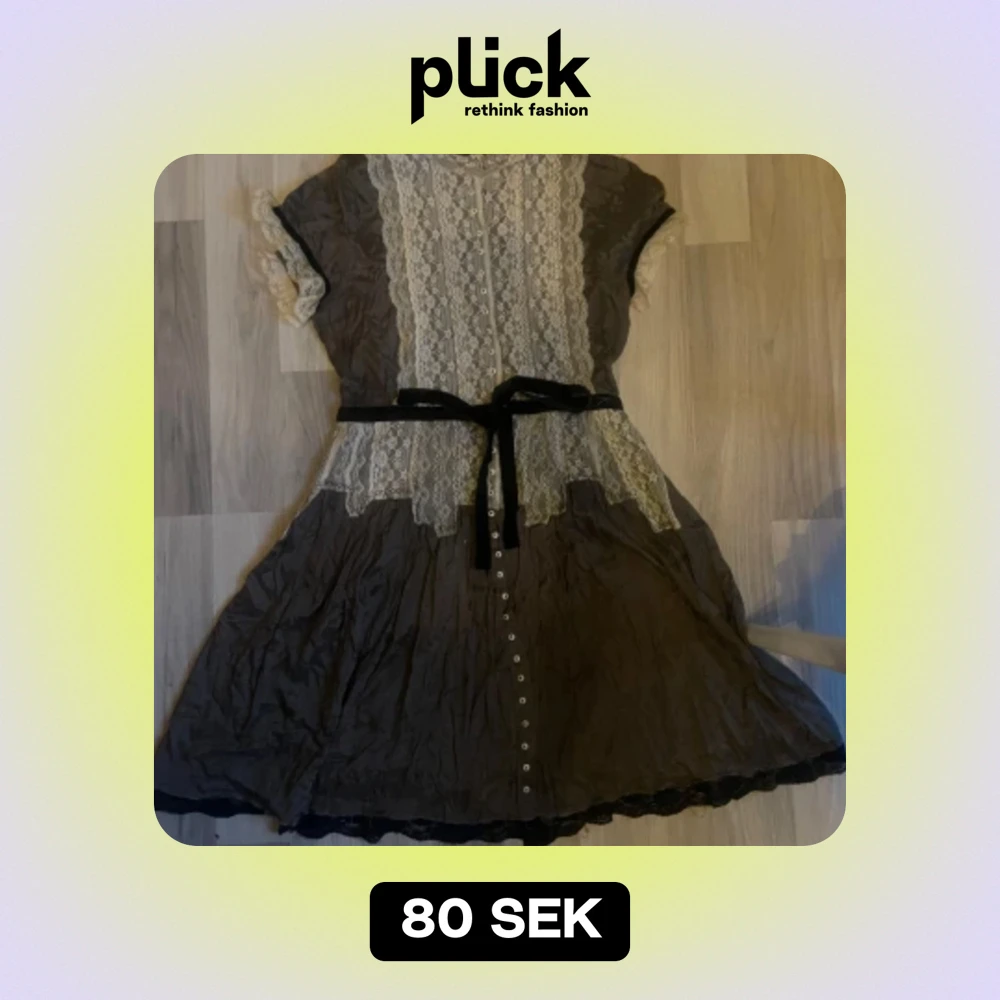 Detta är en väldigt fin grön klänning med vit spets och ett svart band runt midjan. Den är i storlek L men är mer som en M🫶